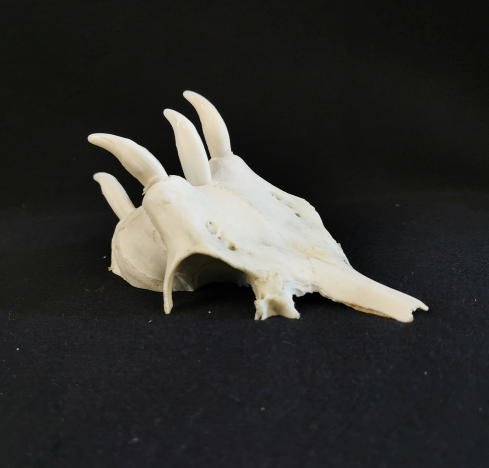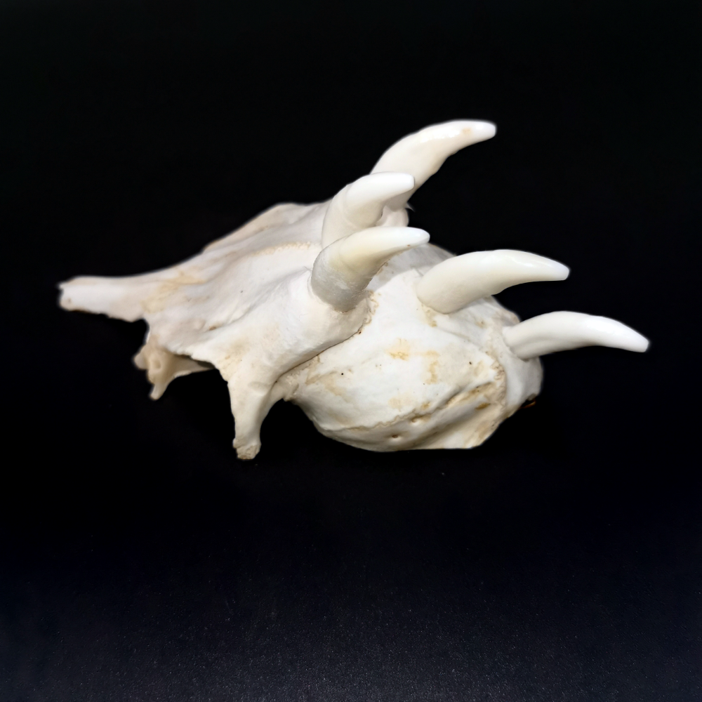 Dragonhead2 Game of dragons Skulptur aus Rehschädel und Koyotenzähnen, der Drachenkopf ist 16 cm lang, 9 cm breit und 8 cm hoch.