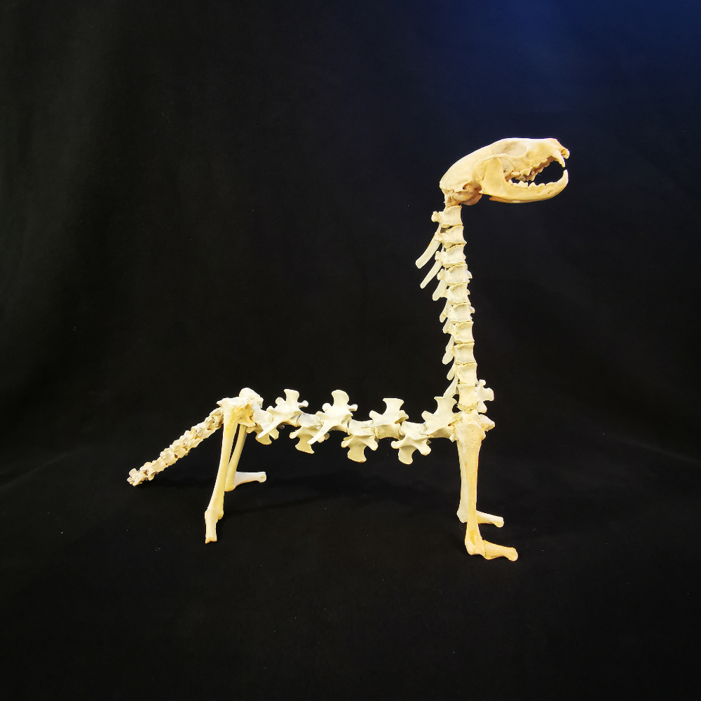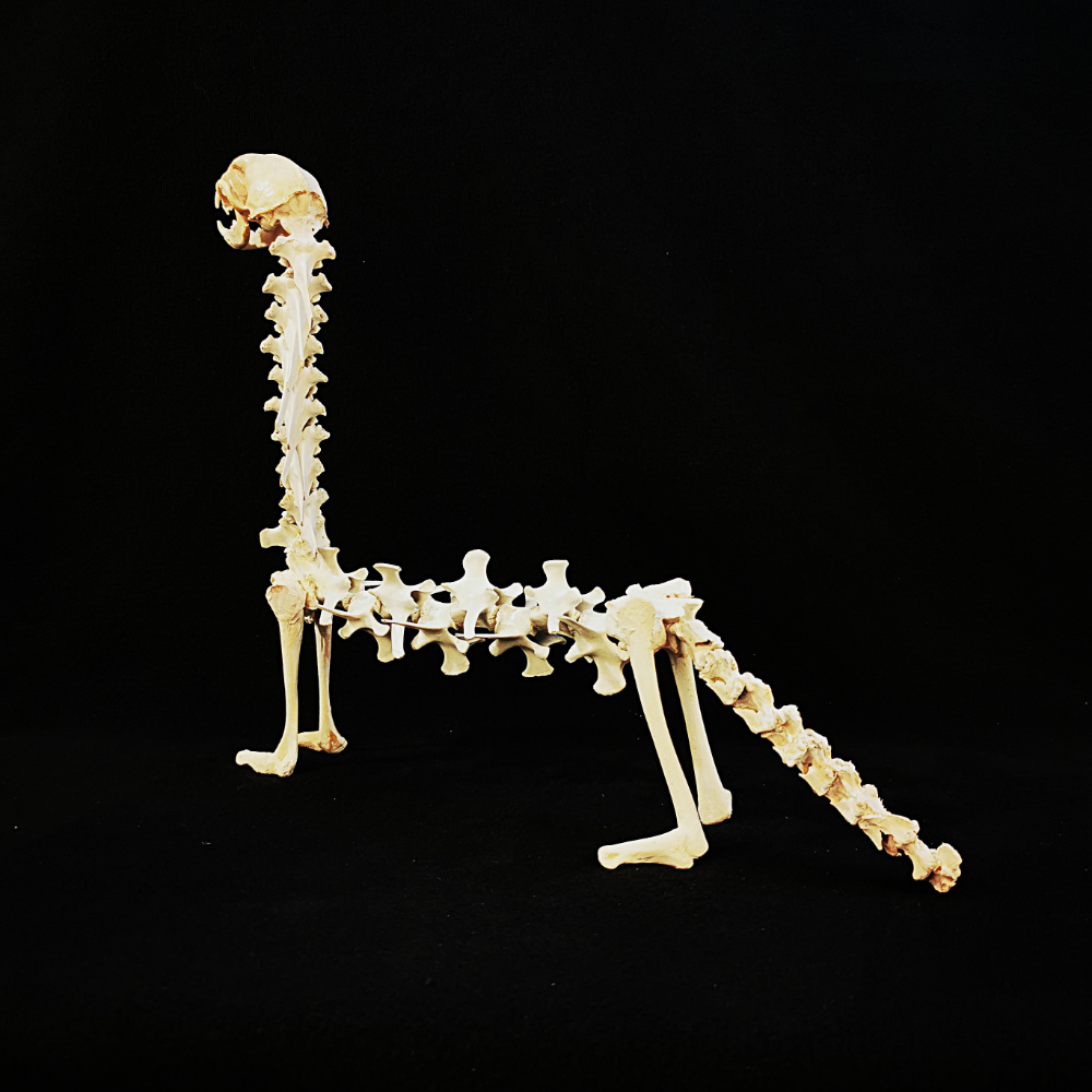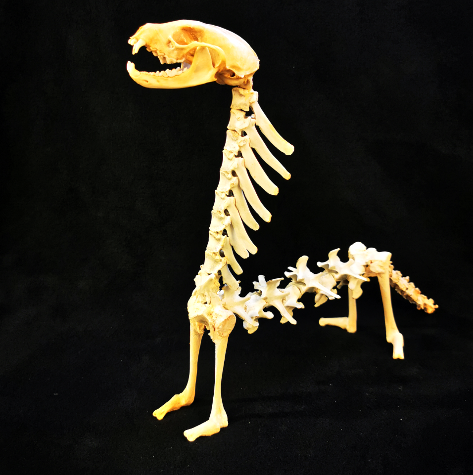Dachs Dämon Tierskulptur, Kunstobjekt in Tierform aus Knochen von Reh und Hirsch, der Kopf ist ein Marderschädel, Länge: 35 cm, Breite: 5 cm, Höhe: 30 cm