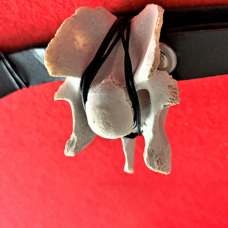 Fetisch ist ein besonders auffälliger Knochenschmuck. Der eigenwillig geformte Wirbelknochen ist im Bondage Stil am Halsband befestigt. Fetisch ist ein bizarres Unikat, nicht nur wenn du erotische Sessions magst. Das Design erinnert zwar an Bondage, verleiht aber jedem Stil einen außergewöhnlichen Touch. Durch 4 Nieten Verschlussknöpfe ist die Länge individuell einstellbar. Fetisch passt wunderbar zu meinem Ohrschmuck, es würde mich freuen, wenn du dir deine eigene Collection zusammenstellen willst.