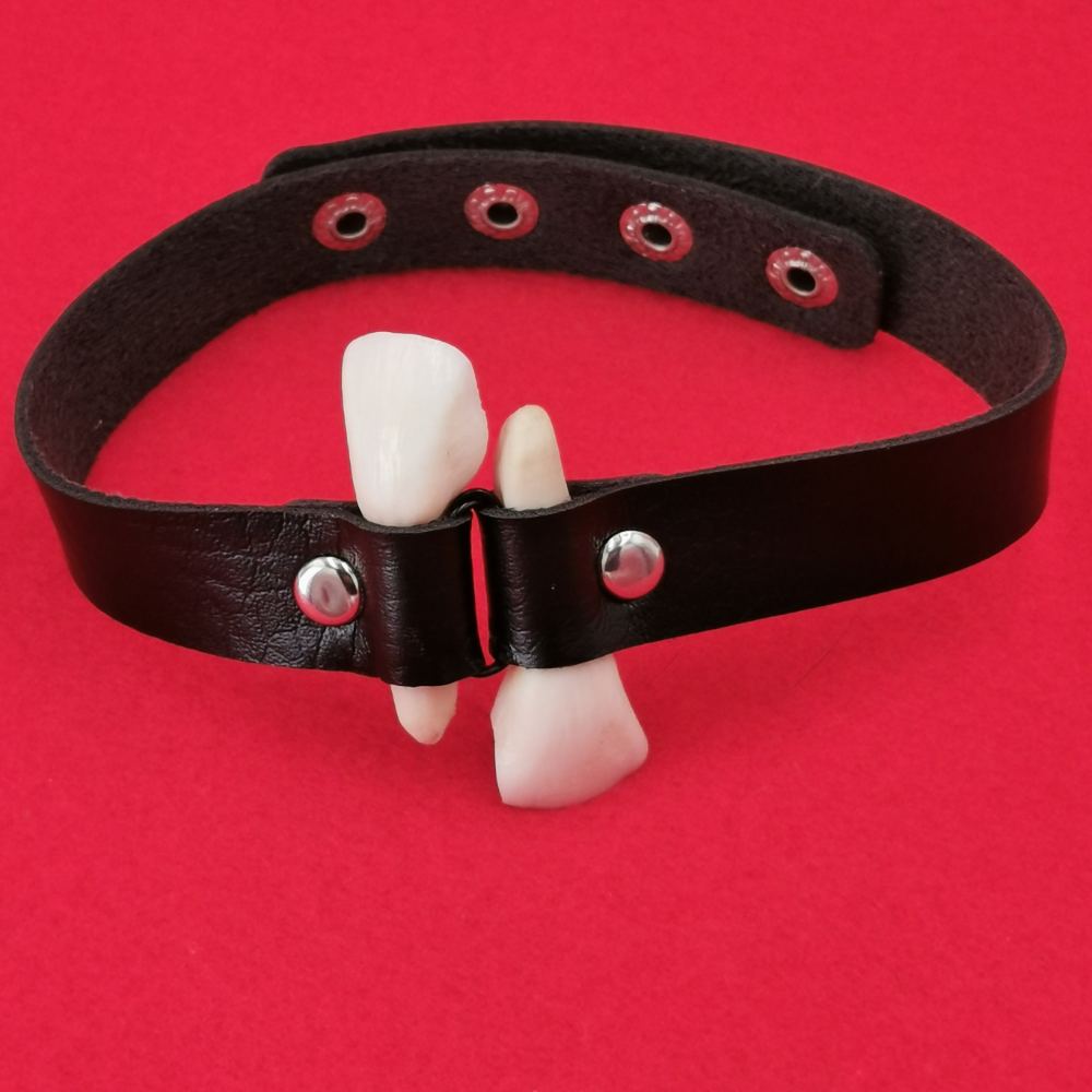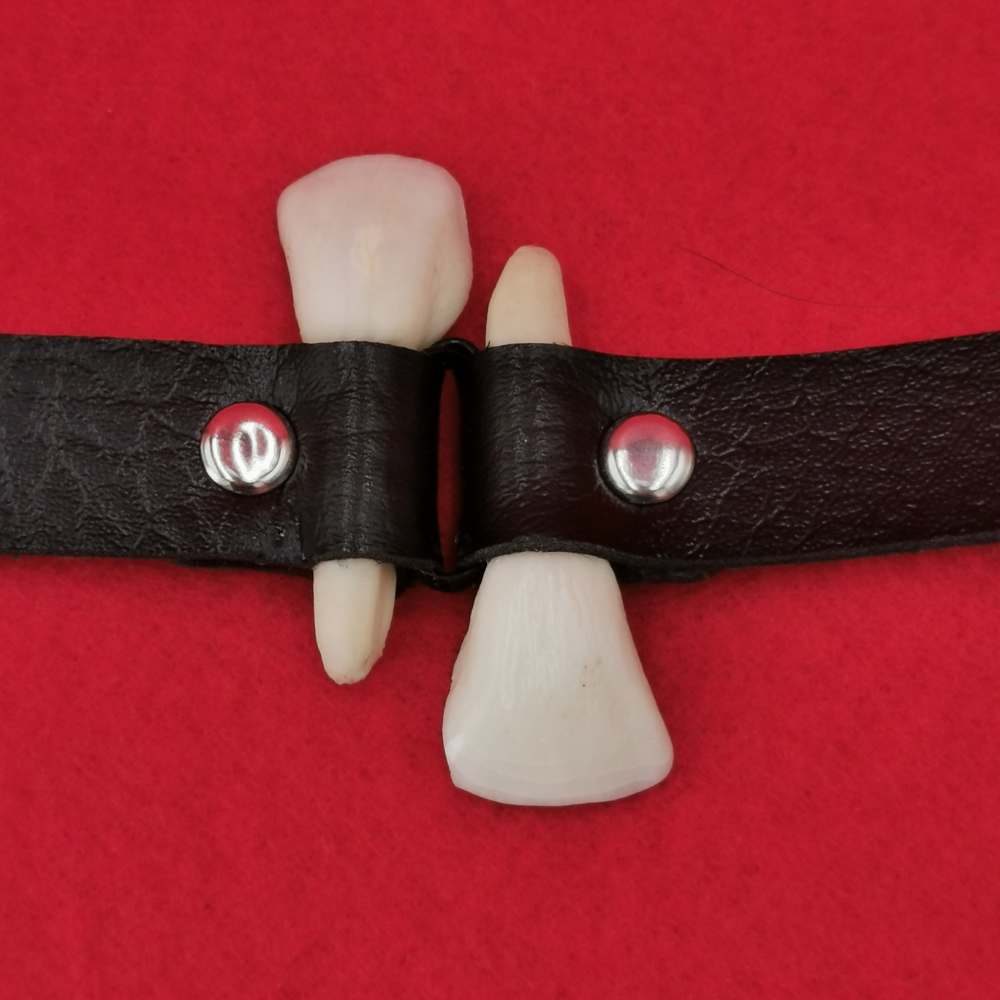 Joker ist Knochenschmuck, der auf den ersten Blick rätselhaft wirkt. Erst bei näherem Betrachten erkennt mensch, dass es sich um Tierzähne handelt. Dieses surreale Rippnstickl ist eines der wirklich seltenen Objekte, ideal für Cosplay, Conventions und LARP. Wenn du gerne auffällst, passt der bissige Joker aber immer.