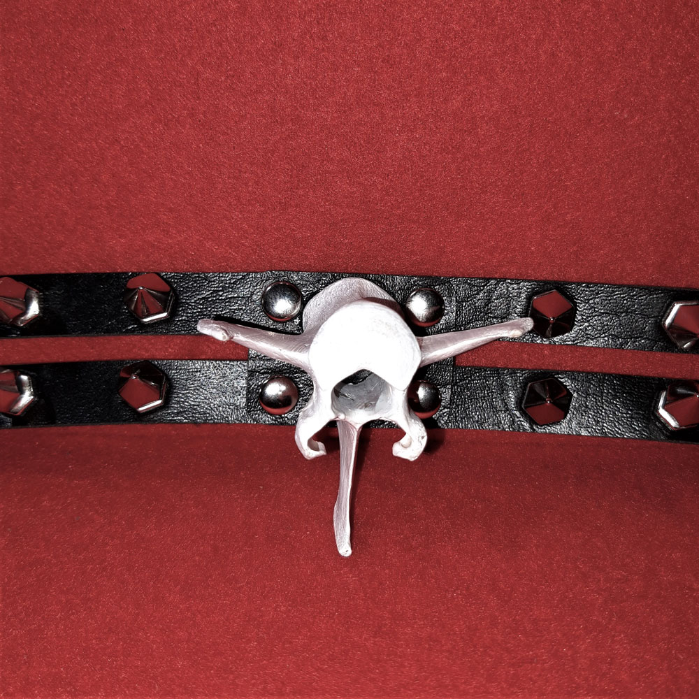 Dieser Knochenschmuck aus der Reihe Loki ist extrem schön durch die vollendete Form des Wirbelknochens und den kalten Glanz der 12 Spikenieten. Ein außergewöhnliches Schmuckstück für extreme Persönlichkeiten. Du bist ein Unikat. Loki JB 06 ist das auch.